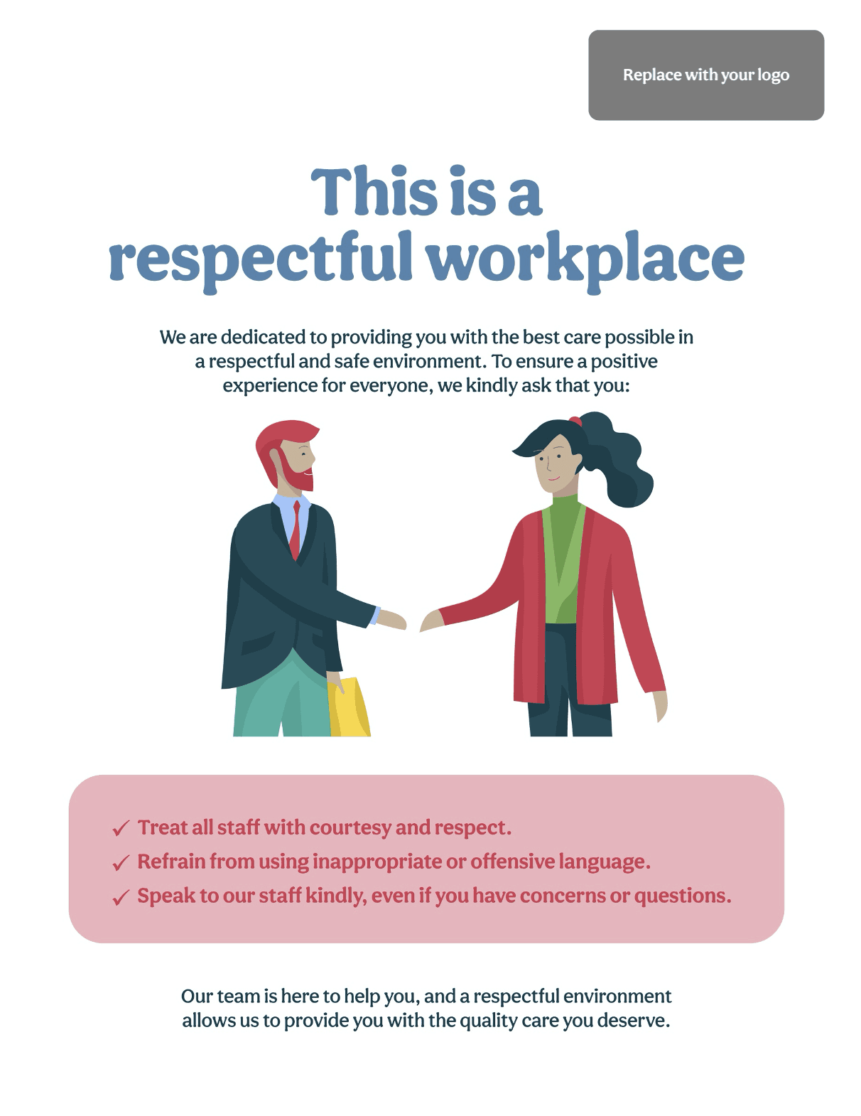 Professionally designed, customizable digital posters to promote workplace respect, inclusion, and positive communication in your organization.